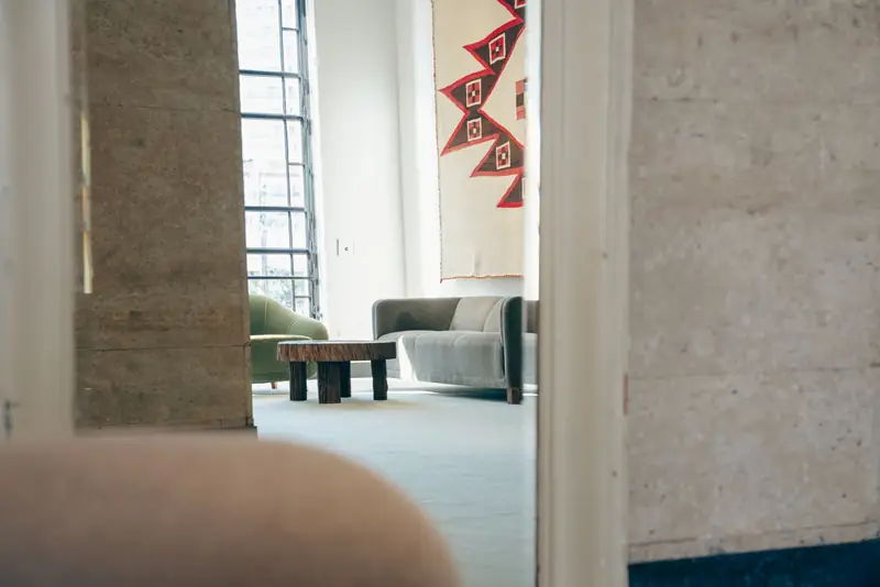 visvimの店舗が入るチャータードビル。その2階にあるのが、ソファ2席だけの静かな空間「little cloud coffee」。目的がなければまず上がることのない場所にある、まさに隠れ家のような一軒だ。
