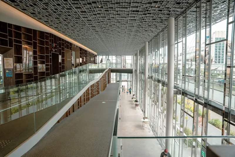 開けた駅前の景色は写真を撮りたくなる場所もあって、さらになでしこ芸術文化センターの方向へ歩いていくと、にぎわいから少し離れた静けさがあり、イベント帰りにひと息つくのにも向いていそうでした。