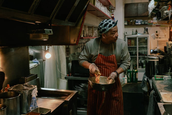 ãã³ããŒãã³ã®çå£é€æ²¹ãããŒã¹ã«ããã¿ã¬ããç±ã ã®é¶èã«çµ¡ã¿ã€ããããã«èªå®¶è£œã®ã¿ã«ã¿ã«ãœãŒã¹ããã£ã·ããšããããæ°é®®ãªéèã圩ããæ·»ããã