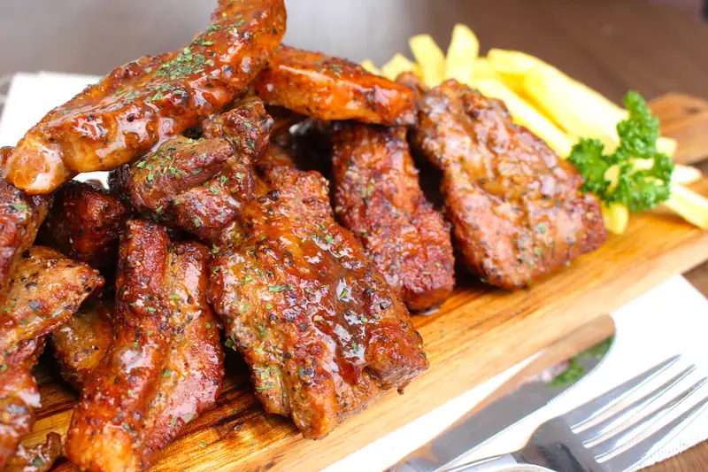 超大号肋排牛排 — 经过骨头处理的超大肋排,用甜辣酱汁和香料调味,视觉冲击力满分。