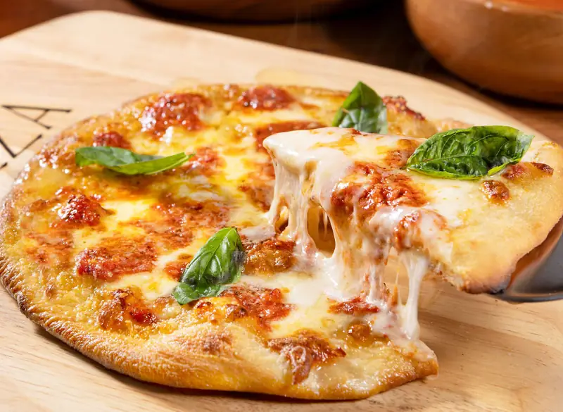 纽约风玛格丽特披萨 — 长时间低温发酵面团,奶酪与番茄酱上下颠倒烘烤,口感独特,与啤酒完美搭配。